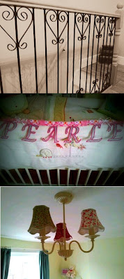 These are the railings in the attic room which totally add to the character of the room, while Pearle's room is just an overload of cuteness with her name spelled out on her cot and these pretty floral lights.
